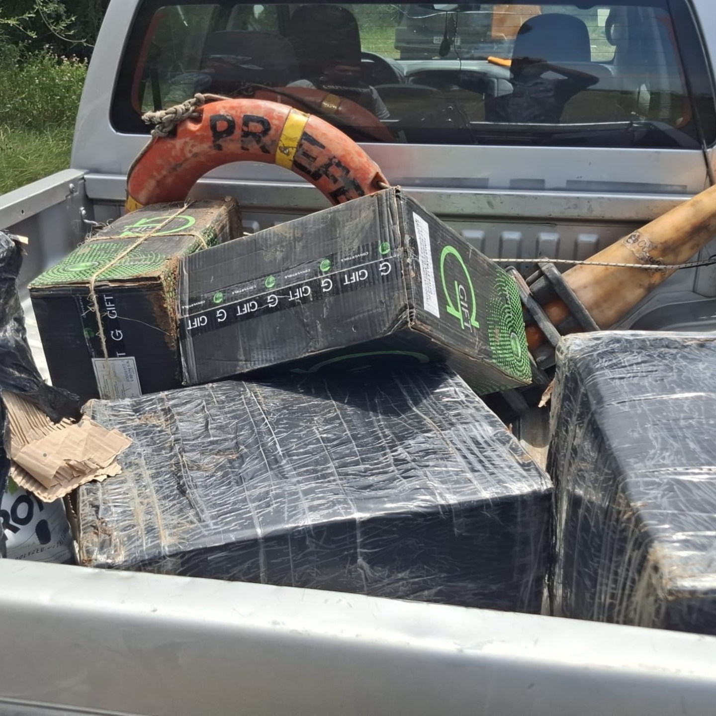 Al llegar sobre la zona de la Costanera Sur realizaron un rastrillaje y hallaron dos cajas de cigarrillos marca GIFT, tres cajas de cigarrillos electrónicos y una bolsa de proteína de 3 kilogramos marca “WHEY”.